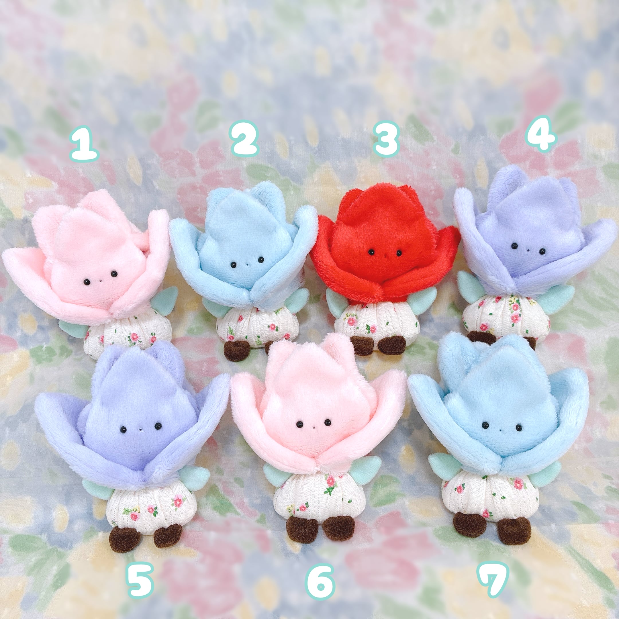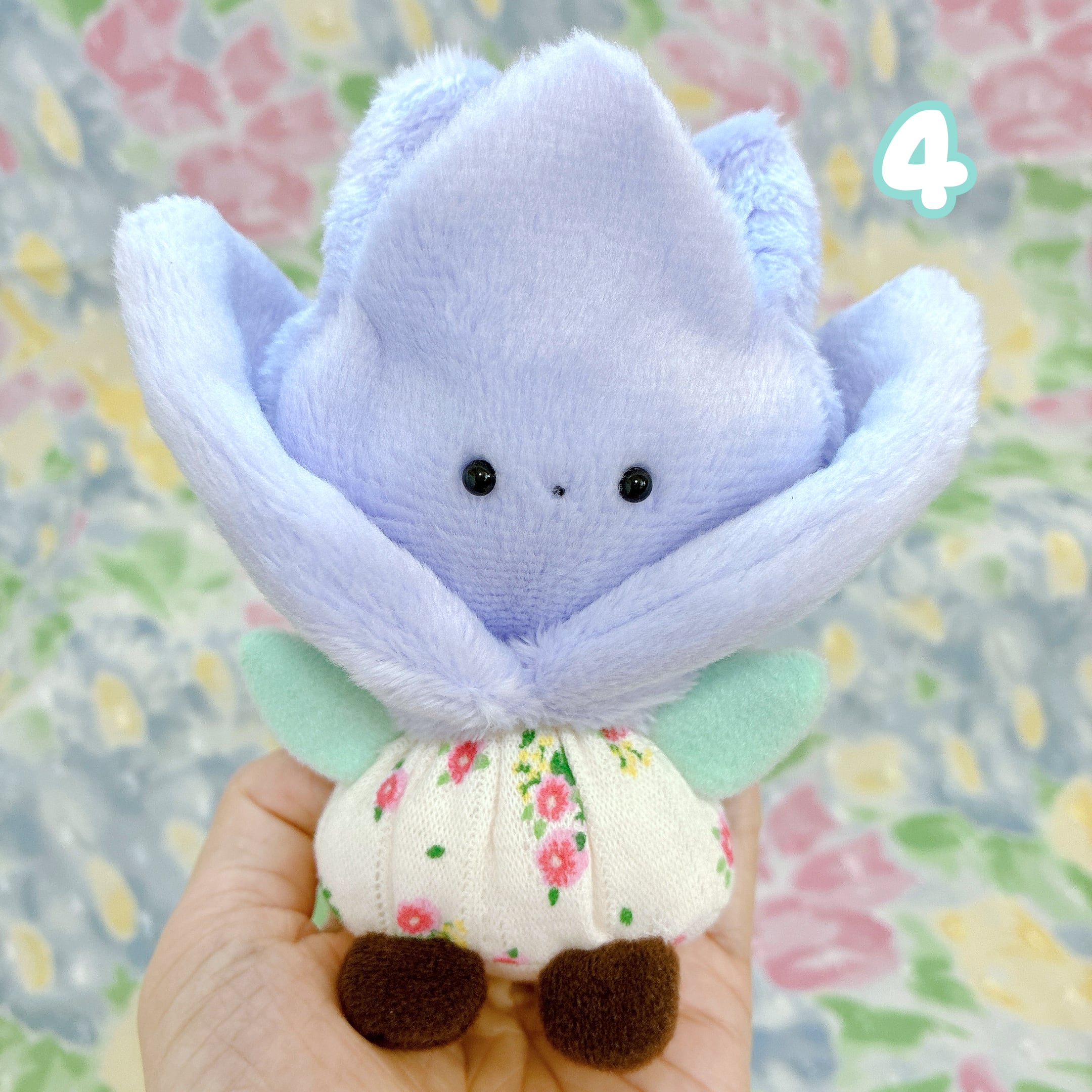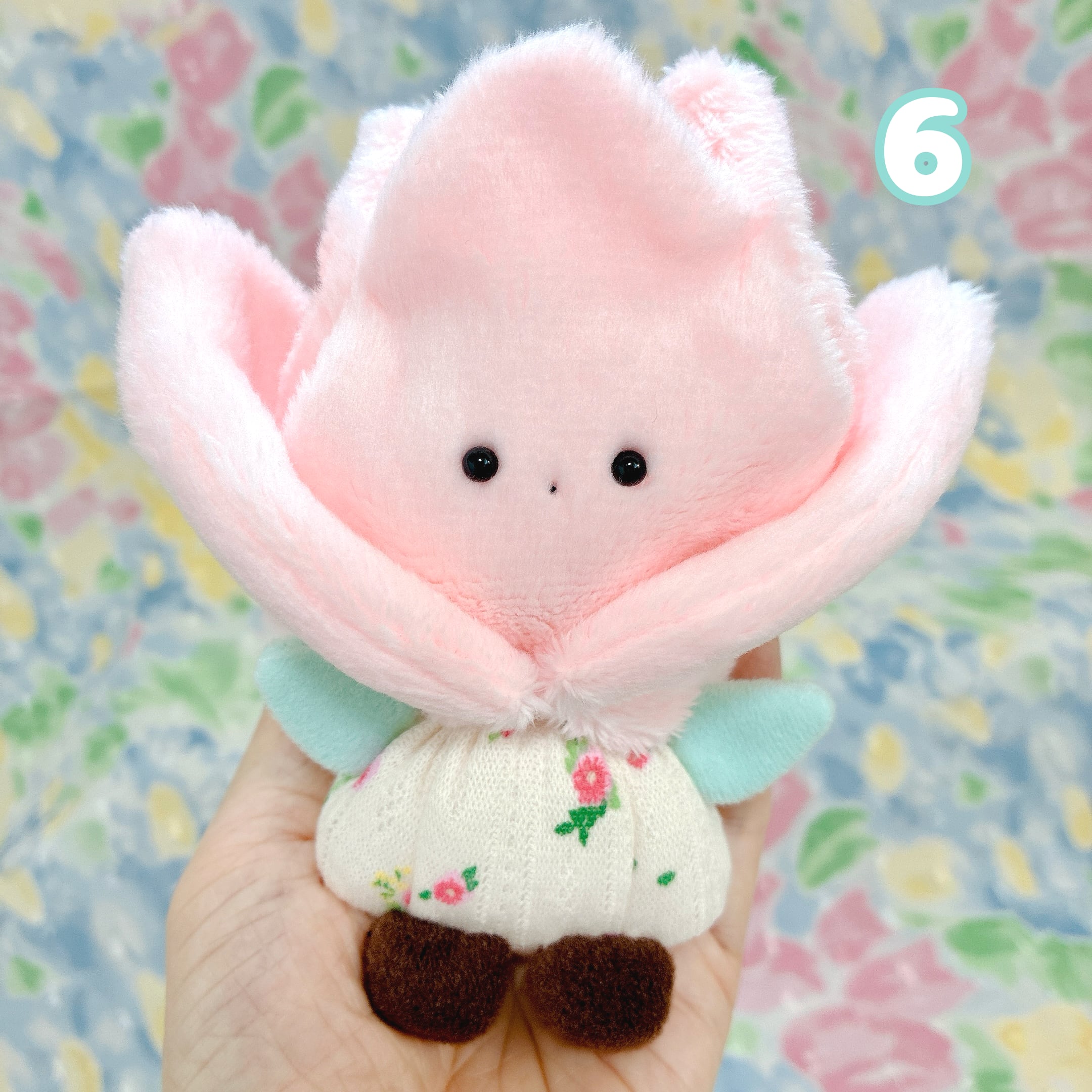 てのひらのうえで咲く 小さなチューリップのぬいぐるみ。